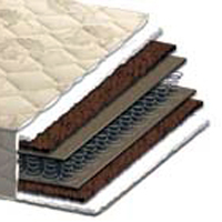 Овечья шерсть обеспечивает приятное тепло и комфортный сон зимой, а хлопковая вата создает оптимальный микроклимат летом. Повышенная прочность и эластичность достигаются благодаря использованию латексированной кокосовой плиты. Традиционный блок "Боннель" придает матрасу среднюю жесткость